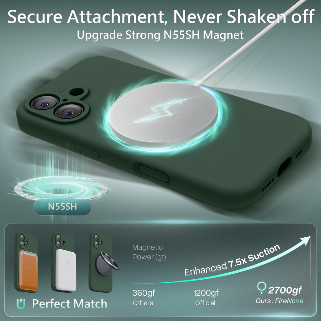 FireNova Magnetic for iPhone 17 Case, Compatible with MagSafe, [Integrated Silicone Camera Control Button] [Camera Protection] Anti-Scratch Microfiber Lining Phone Case, 6.3", Alpine Green