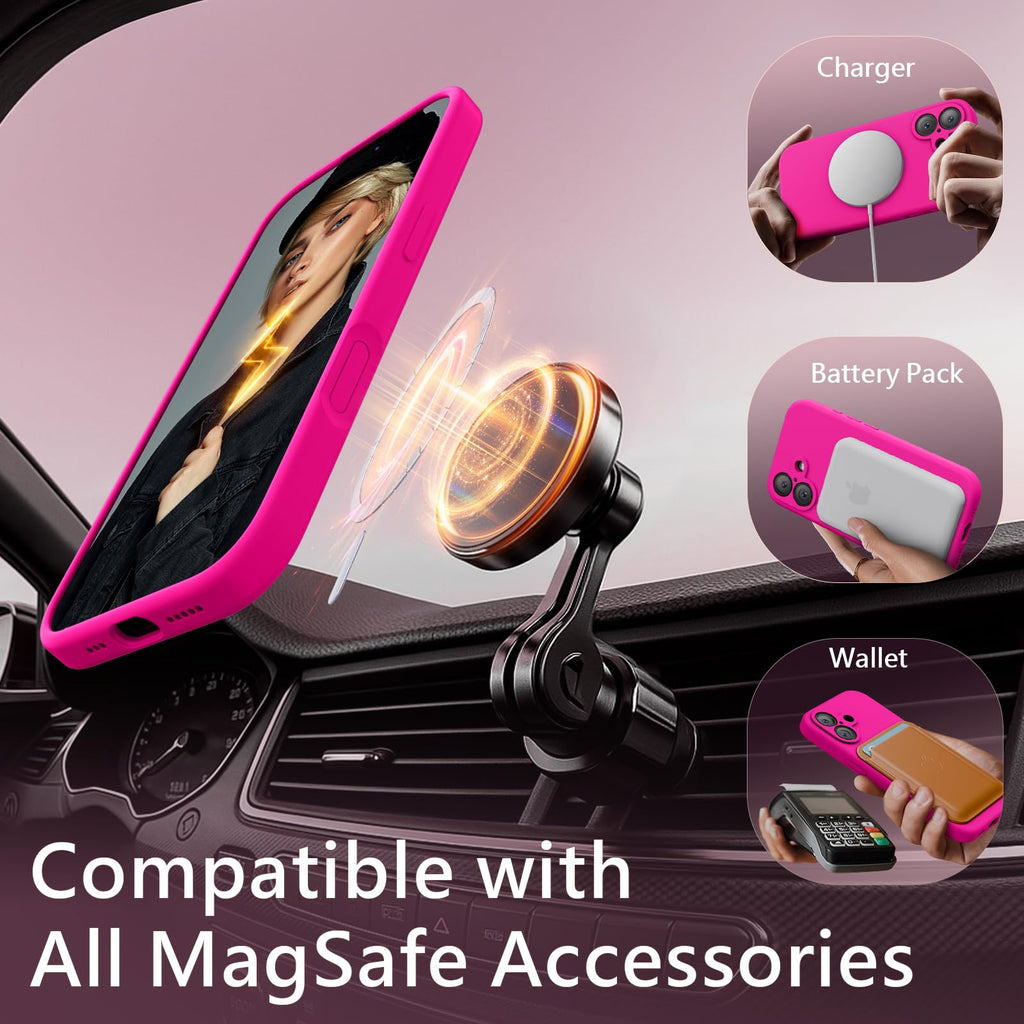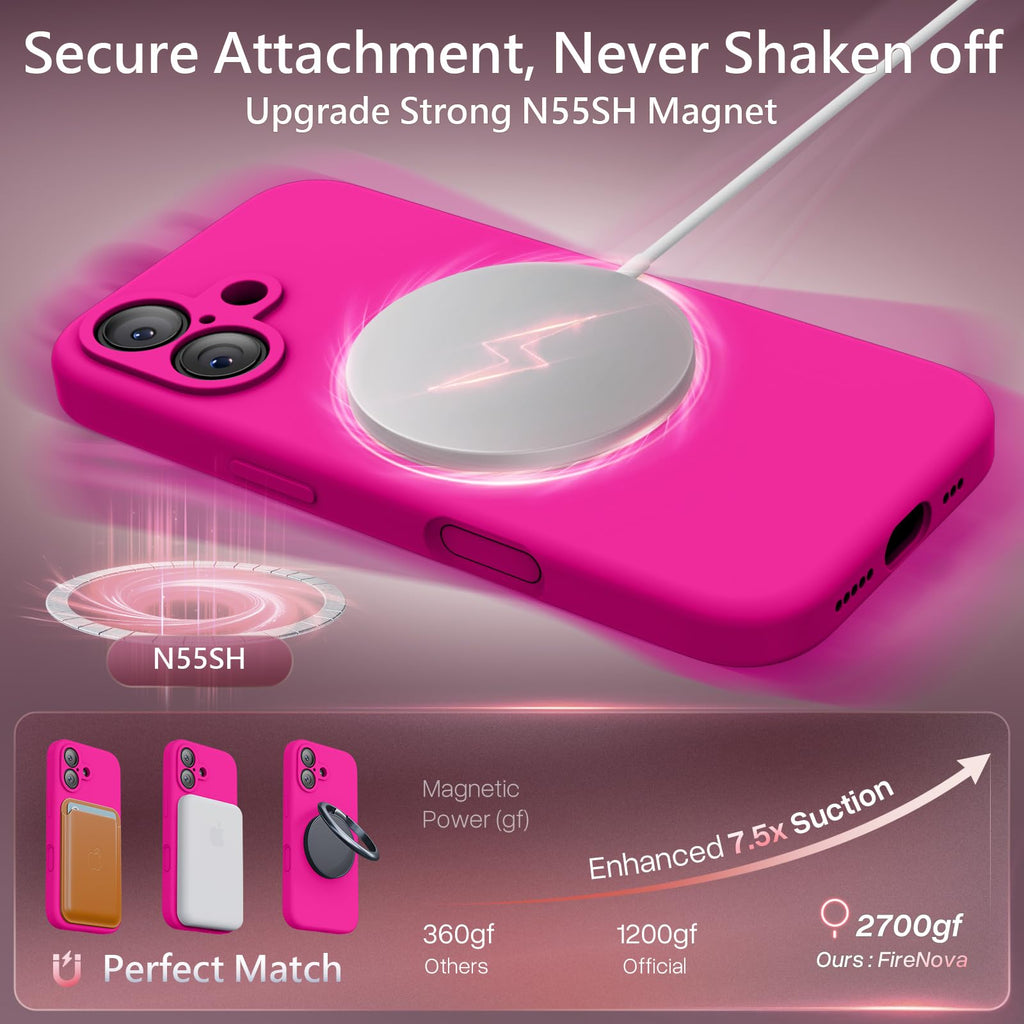 FireNova Magnetic for iPhone 17 Case, Compatible with MagSafe, [Integrated Silicone Camera Control Button] [Camera Protection] Anti-Scratch Microfiber Lining Phone Case, 6.3", Hot Pink