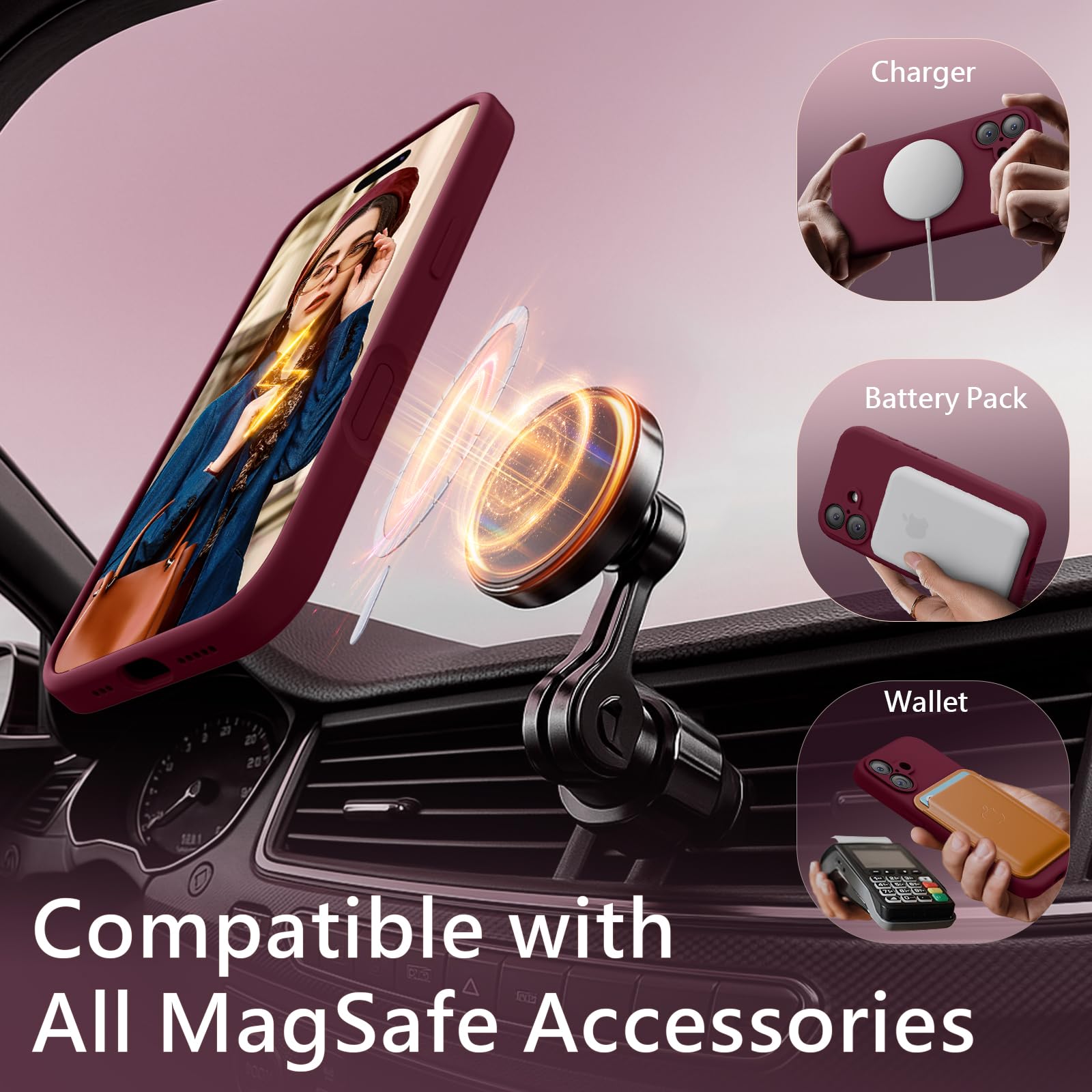 • Ultra-Strong N55SH Magnets: Deliver 7.5X Stronger Suction Than normal case for iPhone 17. Compatible with all MagSafe, Ensures Solid Attachment for Magnetic Car Mounts, Magnetic Chargers, and Wallets, etc. Makes faster & safer wireless charging