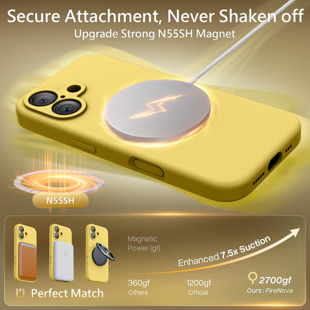 FireNova Magnetic for iPhone 17 Case, Compatible with MagSafe, [Integrated Silicone Camera Control Button] [Camera Protection] Anti-Scratch Microfiber Lining Phone Case, 6.3", Yellow