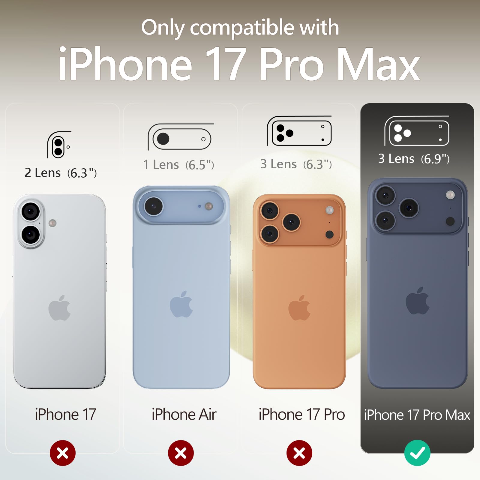 • Ultra-Strong N55SH Magnets: Deliver 7.5X Stronger Suction Than normal case for iPhone 17 Pro Max. Compatible with all MagSafe, Ensures Solid Attachment for Magnetic Car Mounts, Magnetic Chargers, and Wallets, etc. Makes faster & safer wireless charging