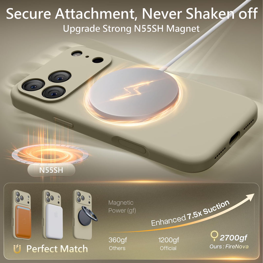 FireNova Magnetic for iPhone 17 Pro Max Case, Compatible with MagSafe, [Integrated Silicone Camera Control Button] [Camera Protection] Anti-Scratch Microfiber Lining Phone Case, 6.9", Khaki