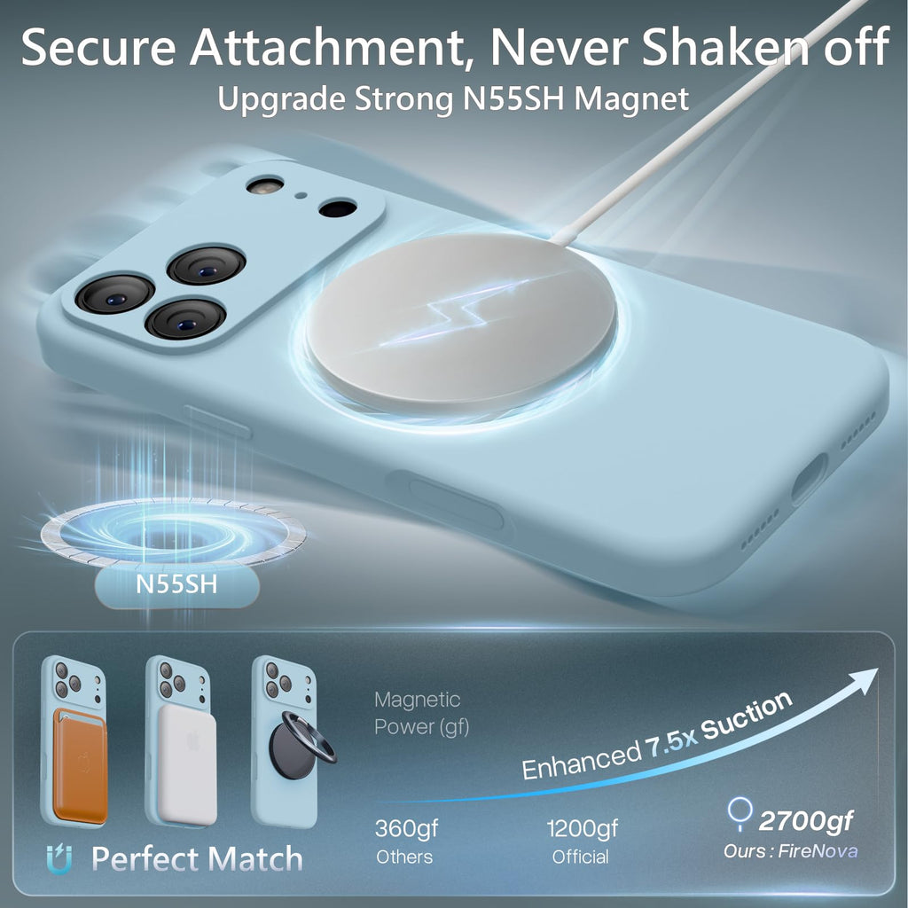 • Ultra-Strong N55SH Magnets: Deliver 7.5X Stronger Suction Than normal case for iPhone 17 Pro Max. Compatible with all MagSafe, Ensures Solid Attachment for Magnetic Car Mounts, Magnetic Chargers, and Wallets, etc. Makes faster & safer wireless charging