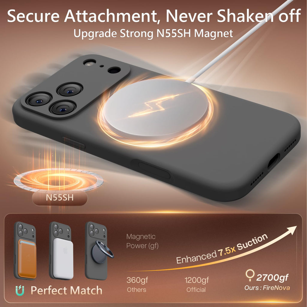 - Ultra-Strong N55SH Magnets: Deliver 7.5X Stronger Suction Than normal case for iPhone 17 Pro Max. Compatible with all MagSafe, Ensures Solid Attachment for Magnetic Car Mounts, Magnetic Chargers, and Wallets, etc. Makes faster & safer wireless charging