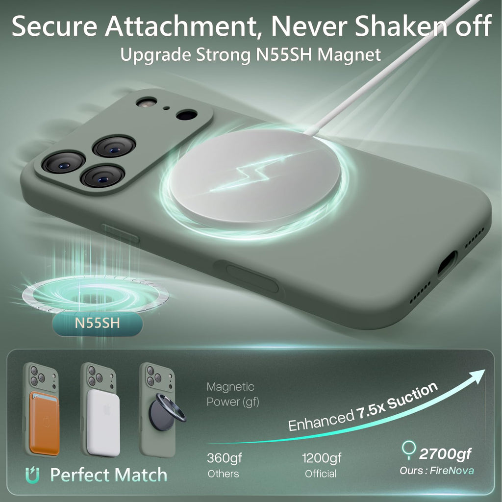 FireNova Magnetic for iPhone 17 Pro Case, Compatible with MagSafe, [Integrated Silicone Camera Control Button] [Camera Protection] Anti-Scratch Microfiber Lining Phone Case, 6.3", Calke Green