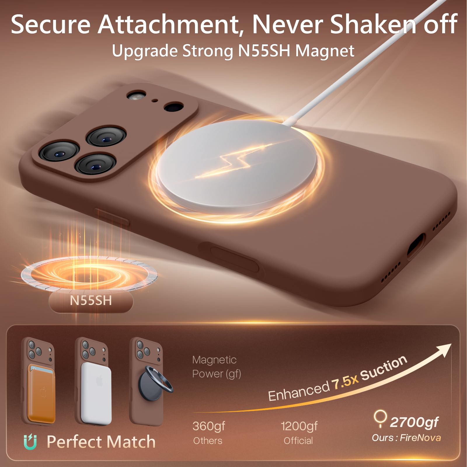FireNova Magnetic for iPhone 17 Pro Case, Compatible with MagSafe, [Integrated Silicone Camera Control Button] [Camera Protection] Anti-Scratch Microfiber Lining Phone Case, 6.3", Light Brown