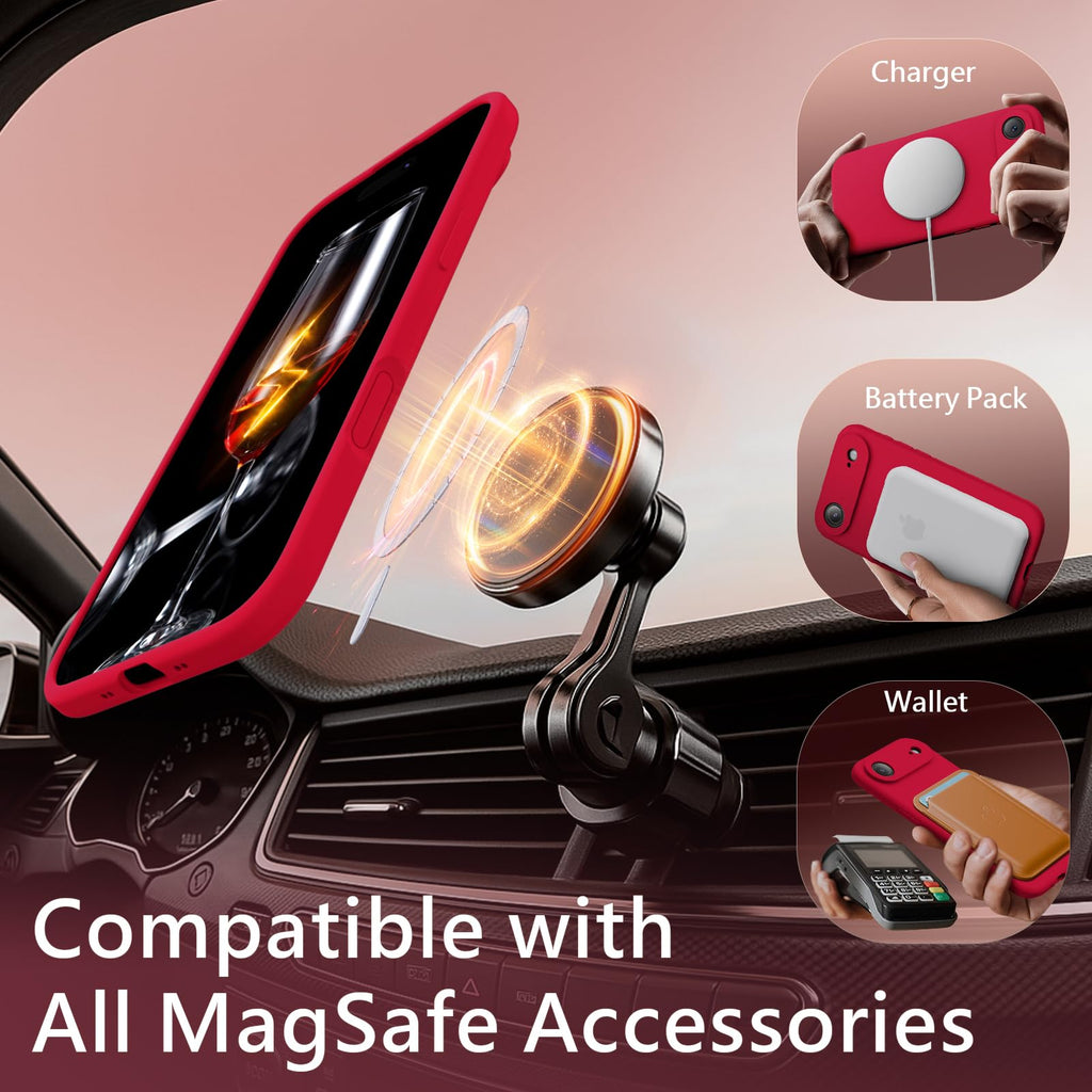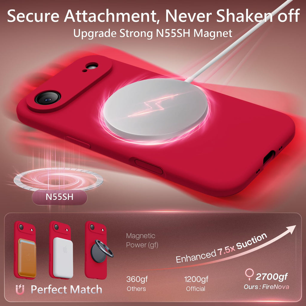 FireNova Magnetic for iPhone Air Case, Compatible with MagSafe, [Integrated Silicone Camera Control Button] [Camera Protection] Anti-Scratch Microfiber Lining Phone Case, 6.5", Deep Red